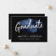 Modern Glam Classic Graduate Elegant Script Calligraphy Graduation Grad Cap Black Navy Blue Non Photo Graduation Announcement