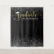 Elegant graduation party backdrop sign celebrates your grad in style! Design features a grad cap, "Graduate" in modern faux gold foil script, and modern custom text that can be personalized with the graduate's name, class year, and school. Includes a border of sparkling silver and white confetti. Black background color can be modified.