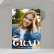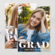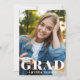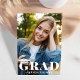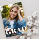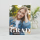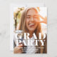This design features a graduate announcement, with modern minimalist design, a 2 photo template, perfect for high school or college, with trendy script and bold typography, a simple, graduation grad party, graduation hats, grad party invitation