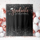 Elegant graduation party backdrop sign celebrates your grad in style! Design features a grad cap, "Graduate" in modern rose gold script, and modern custom text that can be personalized with the graduate's name, class year, and school. Includes a border of sparkling silver and white confetti. Black background color can be modified.