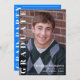 This design features a graduation graduate grad modern, a light Azure Blue photo picture senior, a blue minimalist clean simplistic, with your school colour custom name, with the class of simple block typography, a classy graduation announcement, a grad graduation party invitations, a contemporary minimal simple, a basic green graduation photo cards, a simple graduation photo invitations