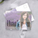 This design features a graduate thank you postcard template, with cool typography design, a stylish, trendy, modern, 2 photo template, with simple thanks, a simple postcard great for high school or college thank you card.