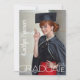 Announce your graduate's achievement with this full-bleed photo text overlay featuring modern, stylish typography in your choice of colours to stand out on your picture and chic calligraphy script for the name. The back features one photo and your custom text to include additional information. All text font styles, colours, size and placement as well as the GRADUATE graphic colours are editable. ASSISTANCE: For help with design modification or personalisation, colour change, resizing, transferring the design to another product or if you would like coordinating items, contact the designer BEFORE ORDERING via the Zazzle Chat MESSAGE tab below or email makeitaboutyoustore@gmail.com.