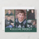 This design features a photo collage, with a graduate graduation multi-photo collage, with a QR code for Facebook social media event page URL. a simple minimalist grad party minimal, with a 5 five-photo grid template, for high school or college seniors, a dark green and white colours, a white text picture photo layout, with your school colour dark green theme, a classic classy grad party invitations, a modern graduation announcement, a clean line lined grid template