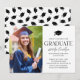 Modern graduation invitation featuring a full photo layout paired with bold “Graduate” typography in a clean black and white design. Personalise with the graduate’s name, school, and class year. Backside includes coordinating party details with a simple mortarboard icon for a timeless, minimalist look.