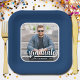 Add your favourite photo to these graduation square blue party paper plates featuring your name, class year and the word graduate in chic lettering on a blue background. MORE designs and colours done in our collection.