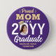 Show your joy for the graduating senior with a stylish custom photo "Proud Mom" round graduation button. The picture and text on this template are simple to personalize. The colors and font styles can be changed with the Zazzle Design Editor tool. Featuring elegant modern typography and stylish calligraphy script, the purple and gold design includes the graduate's photo, name, and class year. Please note that the gold is printed color, not metallic foil. This keepsake accessory adds a unique touch to a commencement ceremony or graduation party outfit. Congratulations to the graduate!