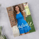 This design features a graduate invitation, with a 2 photo template, perfect for high school or college graduates, with typography calligraphy script, with minimalist script, trendy, 2 picture template, grad graduation party