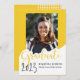 This whimsical photo graduation announcement features the word “graduate” in large yellow letters with a place for your favourite photo. The back is a black and white polka dot design.