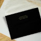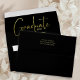 This design features a graduate, graduation envelope, with a return address, perfect for the class of 2024 and beyond, with a simple black and gold, calligraphy script, elegant brush script, and minimalist style, perfect for grad party invites and announcements.