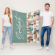 Modern typography elegant sage green birthday, anniversary, easter, Christmas, graduation script personalised multi photo design fleece blanket.