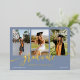 Celebrate the graduate with this modern elegant dusty blue coloured graduation invitation with real foil letters in feminine script font. Customisable with three photos of the graduate.