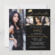 Modern black, gold and white graduation party invitation featuring 4 photos and elegant champagne gold handwritten script typography accented with a faux metallic gold foil graduation cap. ASSISTANCE: For help with design modification/personalisation, transferring the design to another product, or you'd like coordinating items, contact the designer BEFORE ORDERING via Zazzle Chat or makeitaboutyoustore@gmail.com.