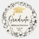 Graduate Script | Grad Hat Gold Floral Wreath Classic Round Sticker