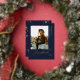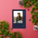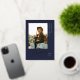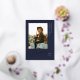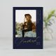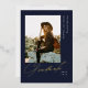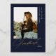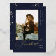 Elegant Graduate Script, Gold Foil Photo Graduation Announcement in navy blue. Features, golden colour marble backing.