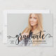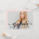 Let your senior portrait shine with this modern graduation party invitation featuring a sweeping black calligraphy "graduate" script overlay across a full-bleed photo. The soft pink back pairs calligraphy and serif typography to keep all your party details beautifully organised. Fully customisable text on both sides makes personalising effortless.