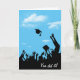 Graduates silhouette crowd with tossed cap in the sky for graduation congratulations