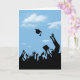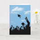 Graduates silhouette crowd with tossed cap in the sky for graduation congratulations