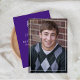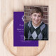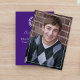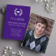 This design features a graduate simple stylish elegant invitation and announcement, a minimalist purple graduation hat, trendy classy laurel leaves laureate, class of 2023 2024 2025, minimal purple white school colours, graduation senior photo picture, graduation invitation announcement card, high school or college, a grad party invite, minimal simple classic graduation
