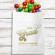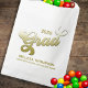 This design features a graduate Grad retro style script elegant modern graduation paper retro favour bag, with a simple high school or college, with class of 2022 2023 2024, gold gradient typography script, retro style calligraphy script, university high school college, graduation party paper favour bag, graduation grad custom party supplies, grad party cookies dessert treats, customised personalised candy favour bags