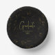 This design features a graduate grad modern simple party paper bowl, graduation black and gold confetti, for high school or college senior, a custom personalised name class of, a trendy stylish calligraphy script font, a grad party paper bowl tableware, a graduation grad party supplies, a simple minimalist gold confetti party, a simplistic contemporary modern design, for soup ice cream chilli dip or anything