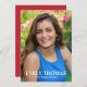 This design features a graduate invitation, with a simple photo template, with red school colours, an elegant, minimalist design, perfect for high school or college, a simple typography, perfect for high school or college graduate, with classic, laurel leaves laureate.