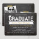 White Graduate Simple Ribbon Bold Typography With A Mortar Board / Graduation Cap Accent On A Retro Black Chalkboard Background Graduation Party Invitation Card.