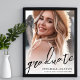 This simple and minimalist graduation party sign features a full-page photo of the graduate with "Graduate" in black handwritten script across the bottom. Below it, the graduate’s name, "Class of 2025," and the school name are displayed over a subtle white gradient that fades seamlessly into the image, ensuring the text stands out.