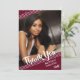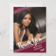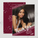 Simple, clean white lines against an editable burgundy/maroon background and faded silver stars with a brush script title THANK YOU and graduation year accent your graduate's name and one of their photos. The back features a faded stars pattern and a place to type in a generic thank-you message (you can delete the sample text to leave blank for personal handwritten messages) on an editable burgundy/maroon background that you can change to coordinate with your photo, school colours or party theme colours.