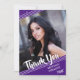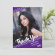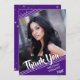Simple, clean white lines against a purple background and muted stars with a brush script title THANK YOU and graduation year accent your graduate's name and one of their photos. The back features a stars pattern and a place to type in a generic thank-you message (you can delete the sample text to leave blank for personal handwritten messages) on a purple background.