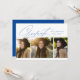 This three photo graduation announcement and invitation is the perfect way to celebrate your graduate. With an modern and elegant script "graduate" in blue and underlined, this design also features room for personalisation including name, school and year. The back is a matching blue with a subtle dash pattern to match the underline on the front and includes room for graduation party invitation text. This stylish graduation announcement works well for a high school graduate or a college graduate. Other colours and styles available in the collection.