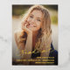 Celebrate your graduate's achievement with this Modern Script Overlay Graduation Photo Announcement postcard featuring their custom photo and real gold foil typography. Personalise with their name, graduation year, degree, school and future plans for a bold yet timeless keepsake. A stylish way to share a milestone with family and friends. The real gold detail up levels this as a keepsake and frame-worthy postcard. The return address is also customisable, one less thing to label.