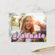 This design features a graduate typography modern pink simple, with a cool retro two 2 photo layout, high school or college graduation, with a QR code website social media, with an online editable scan URL link, a minimalist picture minimal class of, a modern style, use for graduation grad party invite, for grad party photo invitations, a fun contemporary custom grad vintage, with creative typography text font overlay, a budget friendly postcard template