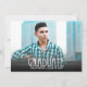 The word "graduate" in a cool white block script along with graduate's name and class year (or delete that line) is printed on the front of these graduation party invitations or graduation ceremony invitations. We've added a black gradient overlay at the bottom so "graduate" is readable over your photo. The word CELEBRATE and your personal party information printed on the back (border colour can be changed or delete it.) More designs in our store.