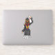 Master's degree graduate holding up her diploma in her right hand. Cute higher education grad fashion illustration sticker. The drawing features a curly brown hair female in a black cap and gown. Perfect graduation sticker to celebrate the grad. A great gift to give to girlfriends, sisters, or daughters. You can add a name.