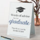 Make your graduate feel special with this unique table sign inviting guests to write "words of advice". Customised with your graduates name. The bottom features the bible verse "Proverbs 16:3 Commit your work to the Lord, and your plans will succeed." and can be changed to copy of your choice.