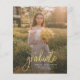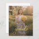 Add your favourite photo, graduation announcement, and party invitation on the reverse side by clicking the "Personalise" button. Featuring a full-frame vertical photo with the word "graduate" in bold script.