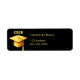 A faux gold graduation cap. Personalise and add your name, address, year. Black background, yellow letters.