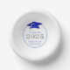 Elegant personalised graduation CLASS OF 2025 graduation party white paper bowls featuring faux metallic royal blue and silver graduation cap and year with your custom text (shown with CONGRATULATIONS NAME) in royal blue. ASSISTANCE: For help with design modification or personalisation, colour change, resizing, transferring the design to another product or if you would like coordinating items, contact the designer BEFORE ORDERING via the Zazzle Chat MESSAGE tab or email makeitaboutyoustore@gmail.com.