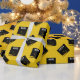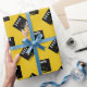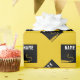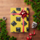 Creative graduation gift wrap and party decoration featuring artistic black and gold graduation cap on yellow gold background. Edit text to add grad's name and the senior class year.