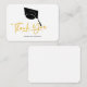 Easily customise this elegant modern graduation thank you card with your name by clicking the "Personalise" button. This card features a graduation cap and a modern script that says "Thank you" in gold typography.