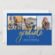 Graduation 4 Photo Collage Script Black Gold Announcement for class of 2025. Easily customise this by changing the text and replacing the photos with yours. A modern and trendy way to announce your graduation this year!