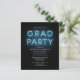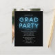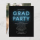 Grad Photo Blue Neon Sign Graduation Party Invitation featuring popular white text and photo you can easily change. Change the date, party details and add your photo on the reverse side by clicking the "Personalise" button