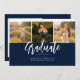 Graduation 4 Photo Collage Script Navy Blue Script Announcement card. Easily customise this by changing the text and replacing the photos with yours. A modern and trendier way to announce your graduation this year!