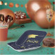 Modern personalised CLASS OF 2025 graduation party paper plates with CONGRATULATIONS and your graduate's name accented with an elegant faux metallic gold foil 2025 and graduation cap or mortarboard in your choice of background colour (shown in navy blue) you can change to a school colour or coordinating party theme colour. ASSISTANCE: For help with design modification/personalisation, colour change, transferring the design to another product or would like coordinating items, contact the designer BEFORE ORDERING via Zazzle Chat or makeitaboutyoustore@gmail.com.