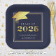 Graduation 2025 Navy Blue Faux Metallic Gold Paper Plate