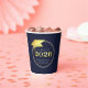Elegant personalised, custom colour CLASS OF 2025 graduation party paper cups with CONGRATULATIONS and your graduate's name accented with a faux metallic gold foil 2025 and graduation cap or mortarboard in your choice of background colour (shown in navy blue) you can change to a school colour or coordinating party theme colour in EDIT. ASSISTANCE: For help with design modification/personalisation, colour change, transferring the design to another product or would like coordinating items, contact the designer BEFORE ORDERING via Zazzle Chat or makeitaboutyoustore@gmail.com.