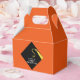 Creative graduation party favours gifts for your fave senior class of 25 grads featuring black graduation cap and gold tassel on an orange background.