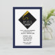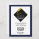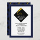 Creative graduation party invites in navy blue with black and gold grad cap pattern.