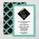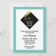 Creative graduation invites featuring classic black cap and gold tassel design pattern on teal blue background.
